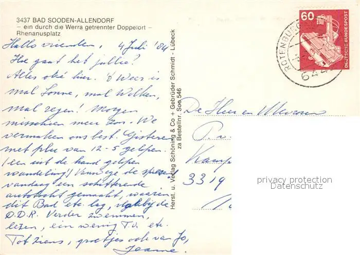 Bad_Sooden-Allendorf Rhenanusplatz Bad_Sooden-Allendorf postalisch gelaufen 1984 Erhaltung siehe scans [KathaD81] Kathoren