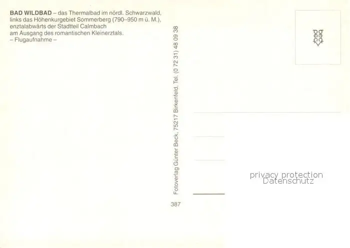 Bad_Wildbad Fliegeraufnahme Bad_Wildbad postalisch nicht gelaufen nach 1965 Erhaltung siehe scans [WerneD78] WernPID7