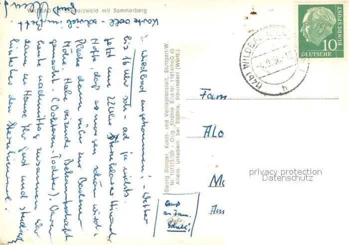 Bad_Wildbad mit Sommerberg Bad_Wildbad postalisch gelaufen 1956 Fliegeraufnahme Erhaltung siehe scans [FriedD77] Fliegeraufnahme Frierer