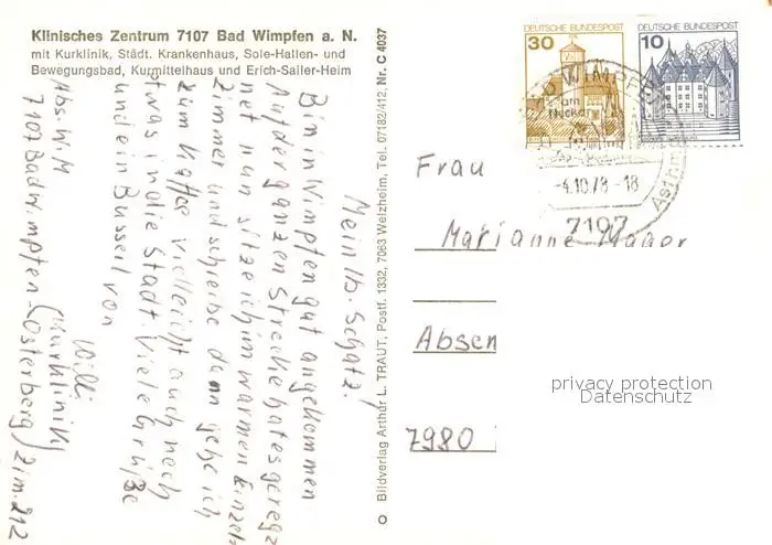 Bad_Wimpfen Klinisches Zentrum Bad_Wimpfen postalisch gelaufen 1978 Erhaltung siehe scans [LiesaD40] LiesID40
