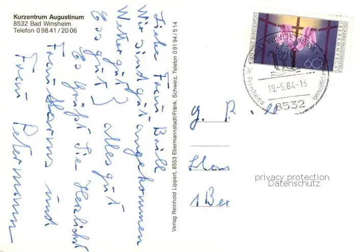 Bad_Windsheim Kurzentrum Augustinum Details Bad_Windsheim postalisch gelaufen 1984 Erhaltung siehe scans [WerneD78] WernPID7