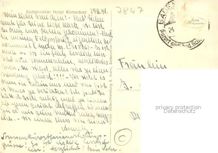 Badenweiler Roemerbad Badenweiler postalisch gelaufen 1941 Erhaltung siehe scans [WerneD78] WernPID7