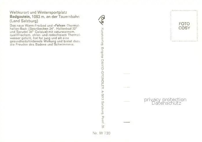 Badgastein Warmfreibad Felsenthermalbad Badgastein postalisch nicht gelaufen nach 1965 Erhaltung siehe scans [FriedD77] Frierer