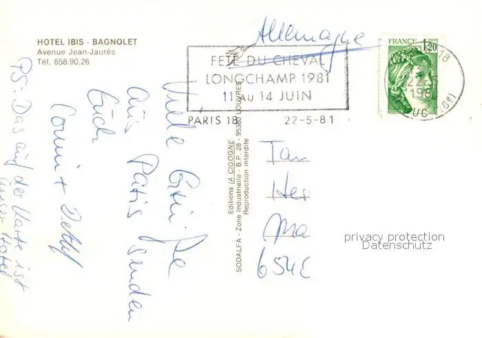 Bagnolet Hotel Ibis Bagnolet postalisch gelaufen 1981 Erhaltung siehe scans [NatalD47] NataID47