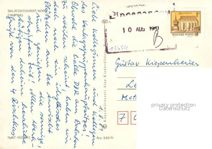 Balaton_Plattensee Kategorie Alte Ansichtskarten Postkarten kp09315 Balaton_Plattensee Caming Balatontourist Nord Balaton_Plattensee postalisch gelaufen 1981 Erhaltung siehe scans [LiesaD40]