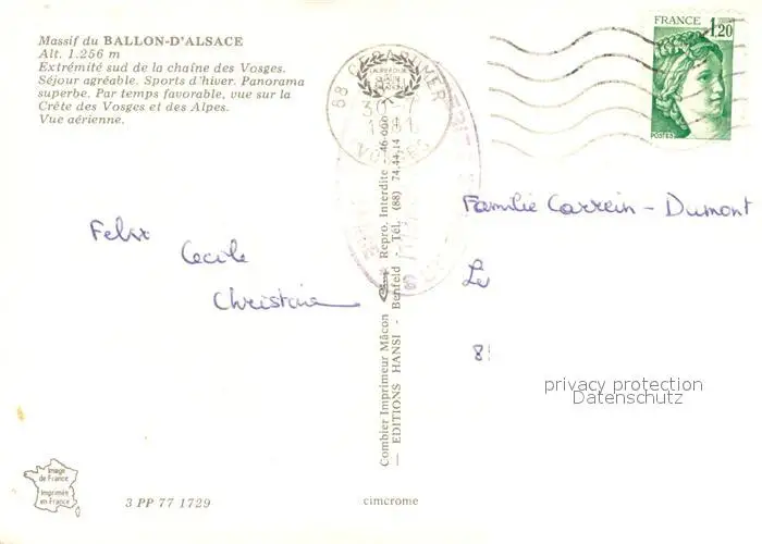 Ballon_d_Alsace Crete des Vosges et des Alpes Vue aerienne postalisch gelaufen 1981 Erhaltung siehe scans [WerneD78] WernPID7