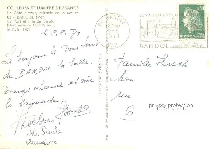 Bandol Port Ile de Bendor vue aérienne Bandol postalisch gelaufen 1971 Erhaltung siehe scans [FriedD77] Frierer