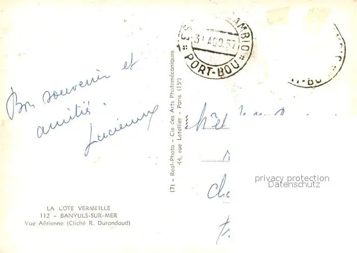 Banyuls-sur-Mer Vue aérienne Banyuls-sur-Mer postalisch gelaufen 1960 Erhaltung siehe scans [FriedD77] Frierer