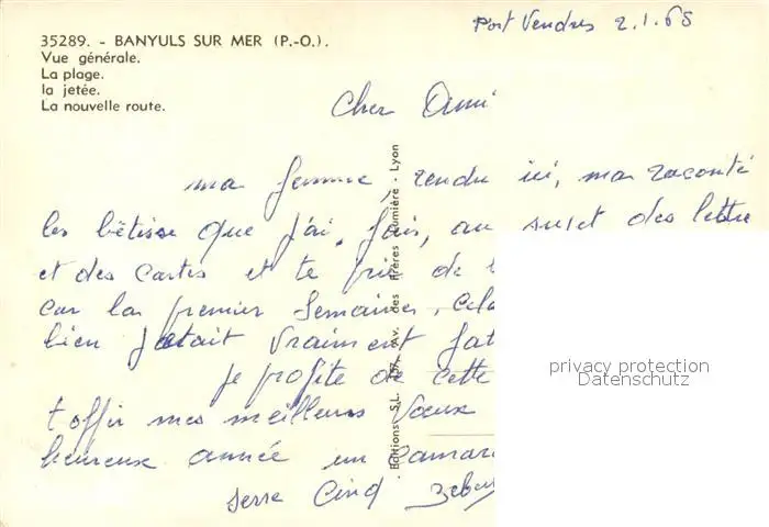 Banyuls-sur-Mer Vue générale Plage Jetée Nouvelle Route Banyuls-sur-Mer postalisch nicht gelaufen 1965 Erhaltung siehe scans [FriedD77] Frierer