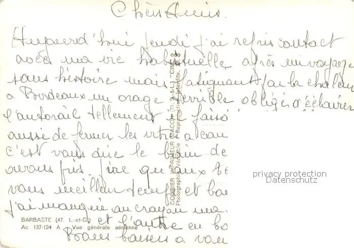 Barbaste Vue aérienne Barbaste postalisch nicht gelaufen 1921-1965 Erhaltung siehe scans [FriedD77] Frierer