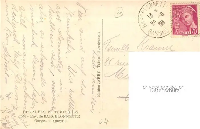 Barcelonnette Gorges du Queyras Barcelonnette postalisch gelaufen 1939 Erhaltung siehe scans [WerneD78] WernPID7
