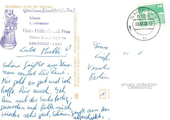 Barchfeld Gasthaus Barchfeld postalisch gelaufen 1988 Erhaltung siehe scans [LiesaD40] LiesID40