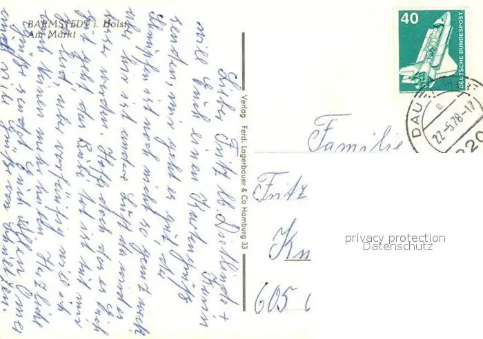 Barmstedt Kategorie Alte Ansichtskarten Postkarten bx52620 Barmstedt Partie am Markt Barmstedt postalisch gelaufen 1978 Erhaltung siehe scans [FriedD77]