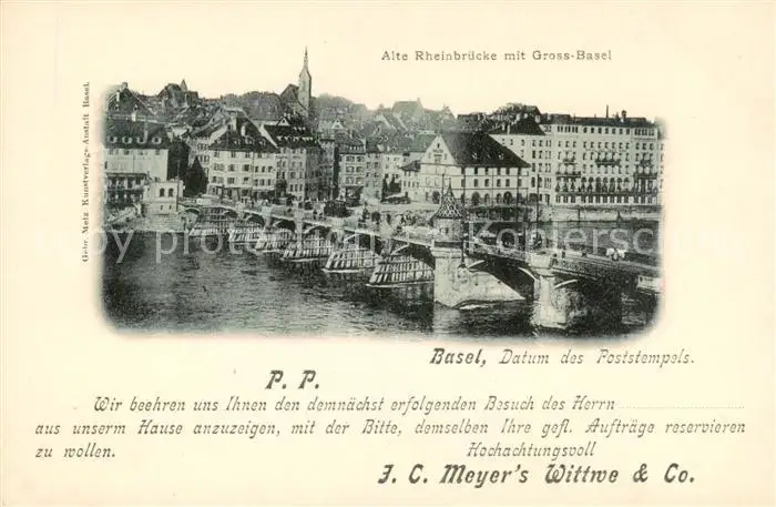 Basel_BS Alte Rheinbruecke mit Gross-Basel Basel_BS postalisch nicht gelaufen bis 1920 Erhaltung siehe scans [FriedD77] Frierer