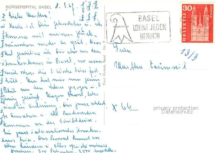 Basel_BS B?rgerspital Basel_BS postalisch gelaufen 1967 Erhaltung siehe scans [LiesaD40] LiesID40