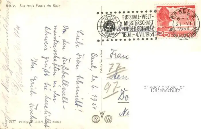Basel_BS Die drei Rheinbruecken Basel_BS postalisch gelaufen 1954 Erhaltung siehe scans [WerneD78] WernPID7