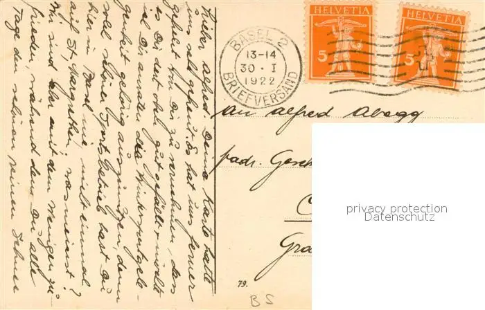 Basel_BS Kaepelijoch mit Muenster Basel_BS postalisch gelaufen 1922 Erhaltung siehe scans [WerneD78] WernPID7