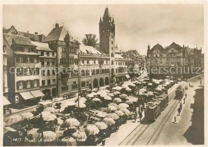 Basel_BS Marktplatz mit Rathaus Basel_BS postalisch gelaufen 1935 Erhaltung siehe scans [WerneD78] WernPID7