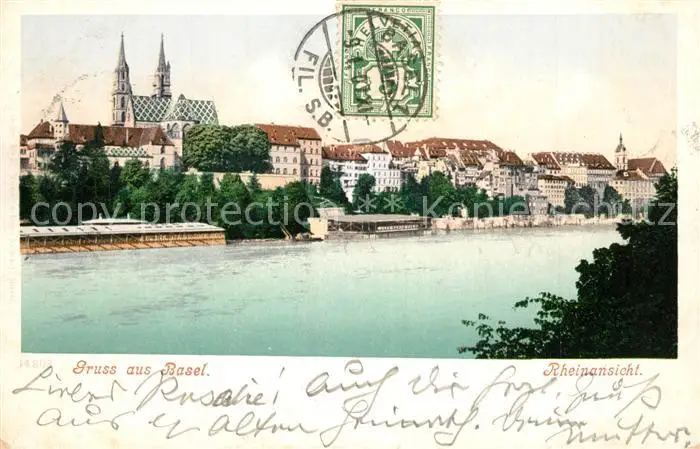 Basel_BS Rheinpartie mit Muenster Basel_BS postalisch gelaufen 1907 Erhaltung siehe scans [LiesaD40] LiesID40