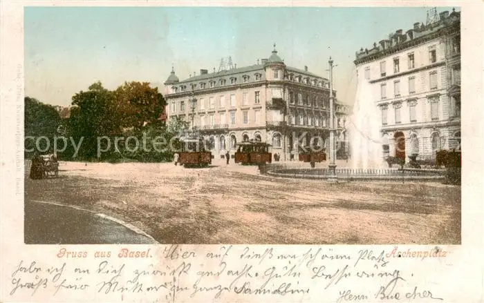 Basel_BS aeschenplatz m. Strassenbahnen Basel_BS postalisch gelaufen 1900 Erhaltung siehe scans [LiesaD40] LiesID40