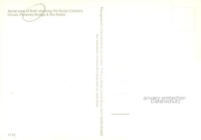 Bath__UK Aerial view showing the Royal Crescent Circus Pulteney Bridge and the Abbey postalisch nicht gelaufen nach 1965 Erhaltung siehe scans [FriedD77] Frierer