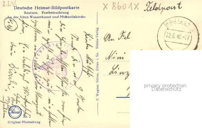 Bautzen Michaeliskirche Bautzen postalisch gelaufen 1940 Feldpost Erhaltung siehe scans [LiesaD40] Feldpost LiesID40