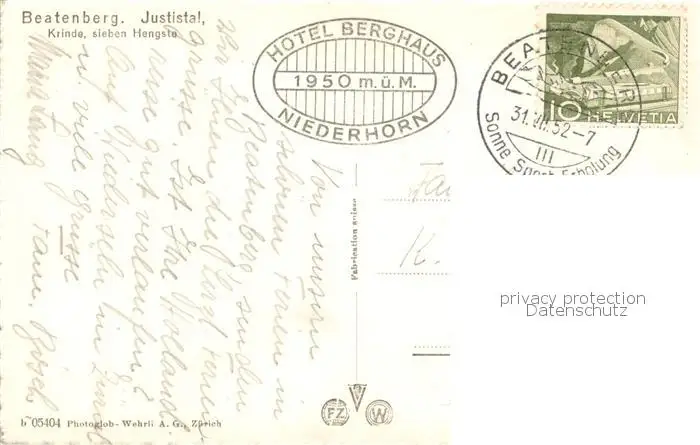 Beatenberg_Thunersee_BE Justistal Krinde sieben Hengste postalisch gelaufen 1952 Erhaltung siehe scans [WerneD78] WernPID7