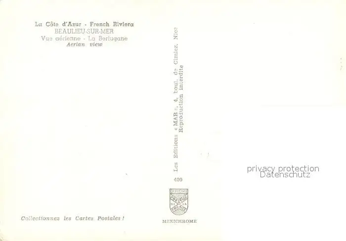 Beaulieu-sur-Mer La Berlugane vue aérienne Beaulieu-sur-Mer postalisch nicht gelaufen nach 1965 Erhaltung siehe scans [FriedD77] Frierer