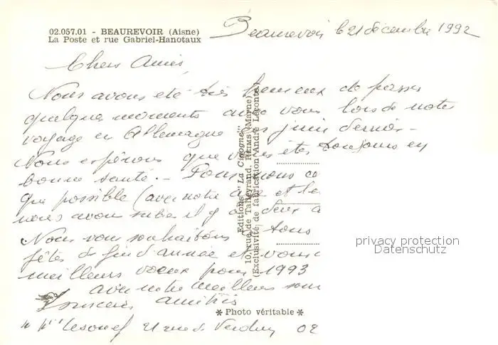 Beaurevoir La Poste Rue Gabriel Hanotaux Beaurevoir postalisch nicht gelaufen 1992 Erhaltung siehe scans [FriedD77] Frierer