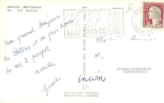 Bellac Vue generale Bellac postalisch gelaufen 1921-1965 Erhaltung siehe scans [WerneD78] WernPID7