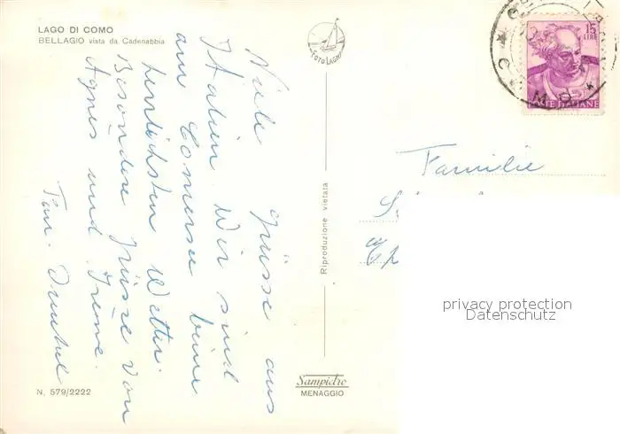 Bellagio_Lago_di_Como Panorama Cadenabbia Bellagio_Lago_di_Como postalisch gelaufen nach 1965 Erhaltung siehe scans [KathaD81] Kathoren