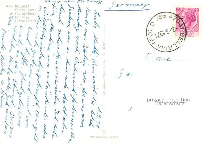 Bellaria Veduta aerea Bellaria postalisch gelaufen 1971 Erhaltung siehe scans [FriedD77] Frierer