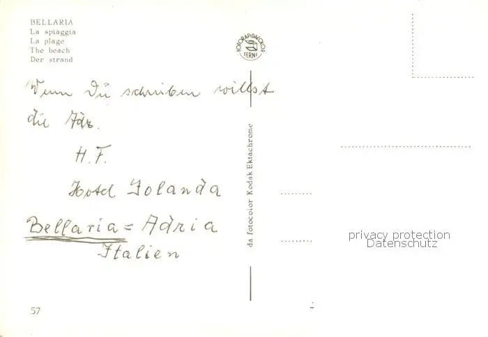 Bellaria_Rimini_IT La spiaggia postalisch nicht gelaufen nach 1965 Erhaltung siehe scans [WerneD78] WernPID7