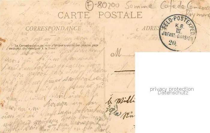 Belloy-en-Santerre Grande-Rue - Feldpost Belloy-en-Santerre postalisch gelaufen bis 1920 Feldpost - Stempel Erhaltung siehe scans [LiesaD40] Feldpost - Stempel LiesID40