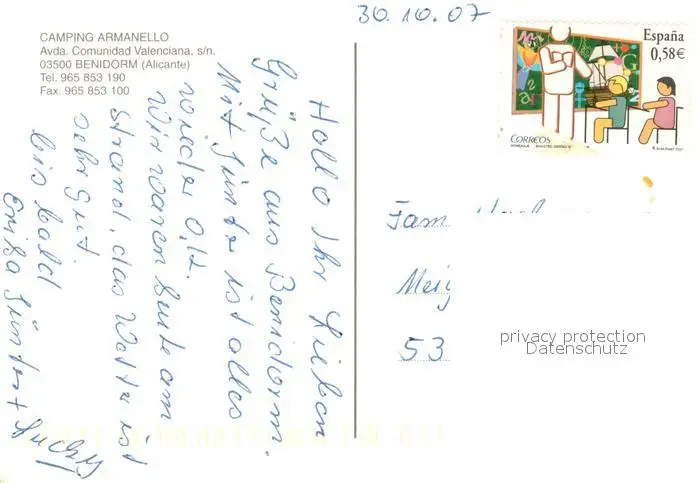 Benidorm Camping Armanello Kiosk Swimming Pool Benidorm postalisch gelaufen 2007 Erhaltung siehe scans [FriedD77] Frierer