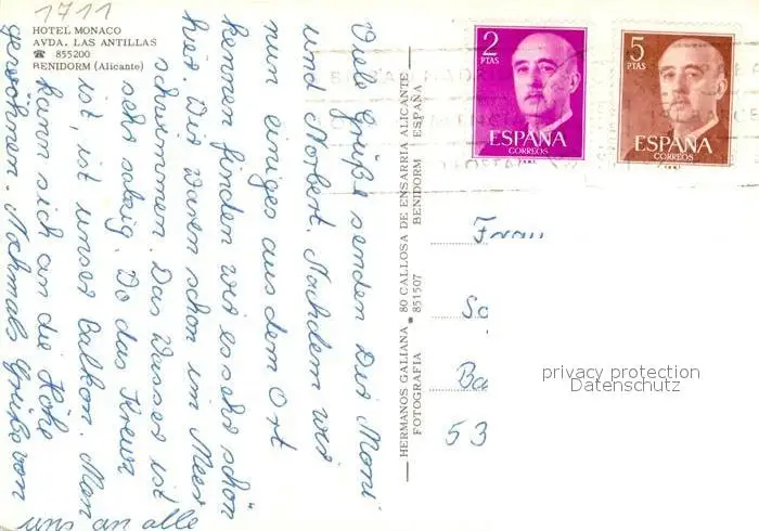 Benidorm Hotel Monaco Benidorm postalisch gelaufen nach 1965 Erhaltung siehe scans [FriedD77] Frierer