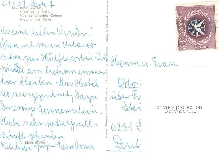 Benidorm Kueste Panorama Benidorm postalisch gelaufen 1967 Erhaltung siehe scans [KathaD81] Kathoren