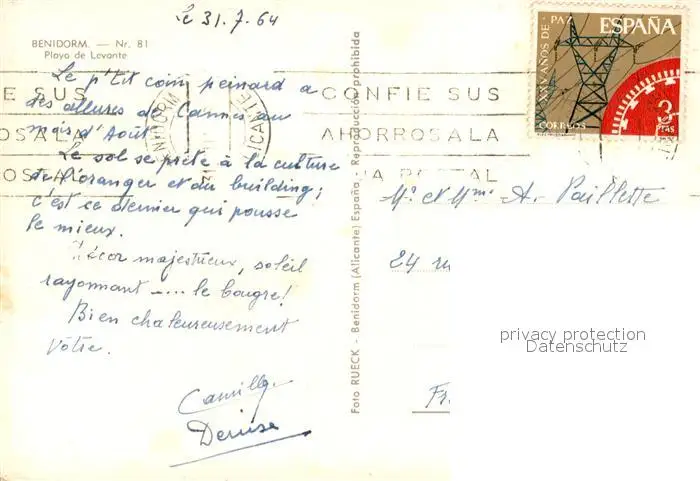 Benidorm Playa de Levante Benidorm postalisch gelaufen 1964 Erhaltung siehe scans [WerneD78] WernPID7