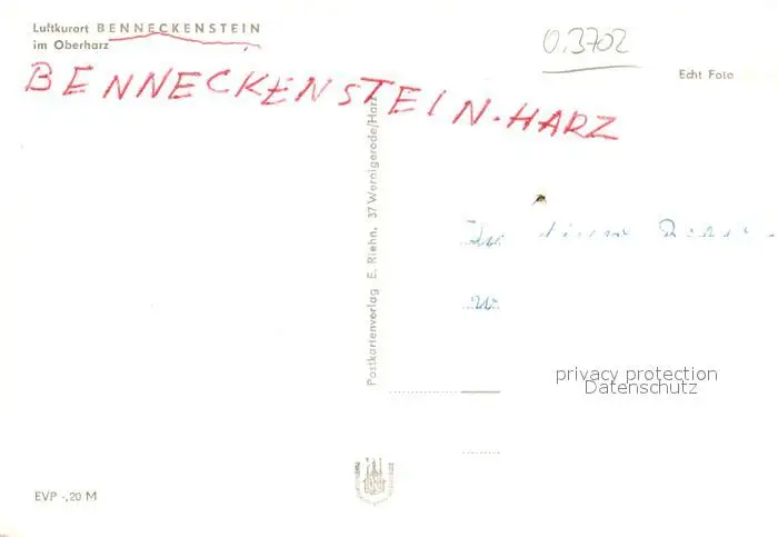 Benneckenstein_Harz Benneckenstein_Harz postalisch nicht gelaufen 1921-1965 Erhaltung siehe scans [LiesaD40] LiesID40