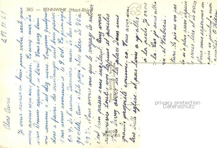 Bennwihr Bennwihr postalisch nicht gelaufen 1961 Erhaltung siehe scans [NatalD47] NataID47