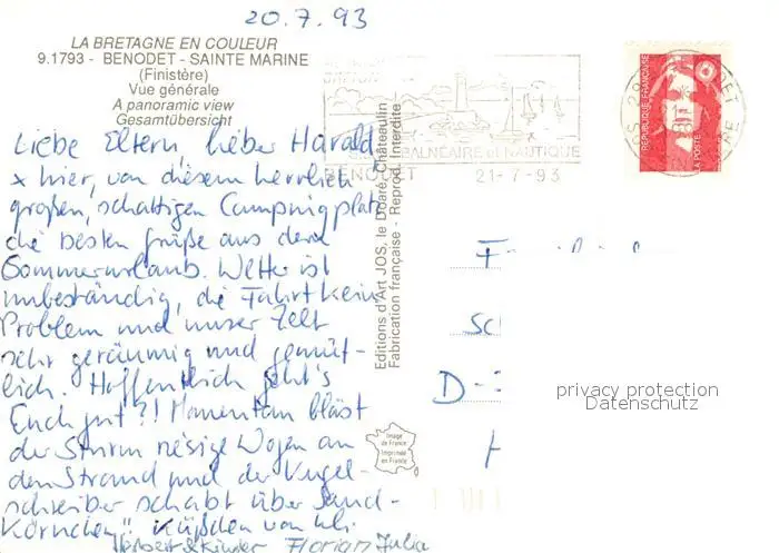 Benodet Sainte Marine Vue aerienne Benodet postalisch gelaufen 1993 Erhaltung siehe scans [WerneD78] WernPID7