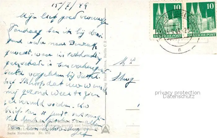Benrath Fliegeraufnahme Benrath postalisch gelaufen 1949 Erhaltung siehe scans [KathaD81] Kathoren