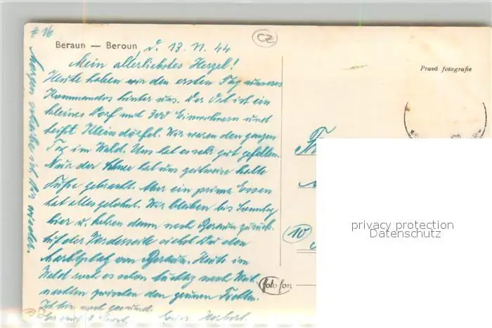 Beraun_Tschechien Rathaus Stadtpanorama Beraun Tschechien postalisch gelaufen 1944 Erhaltung siehe scans [KathaD81] Kathoren