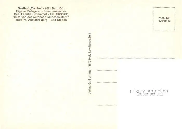 Berg_Oberfranken Gasthof Traube Berg Oberfranken postalisch nicht gelaufen nach 1965 Erhaltung siehe scans [KathaD81] Kathoren