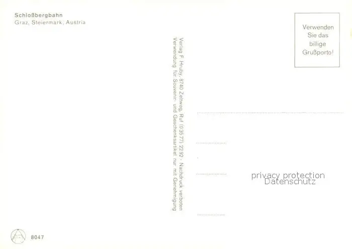 Bergbahn Schlossbergbahn Graz Bergbahn postalisch nicht gelaufen nach 1965 Erhaltung siehe scans [PaolaD17] PaolPID1