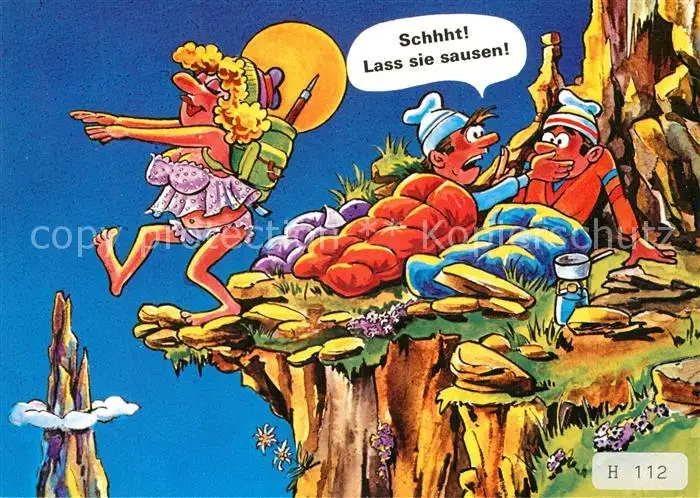 Bergsteigen_Klettern Comic Humor Schlafwandlerin postalisch nicht gelaufen nach 1965 Erhaltung siehe scans [PaolaD17] PaolPID1