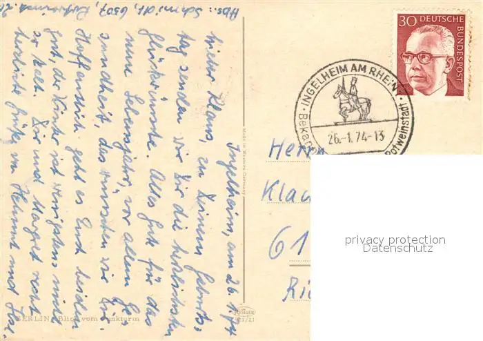 Berlin Blick vom Funkturm Berlin postalisch gelaufen 1974 Erhaltung siehe scans [KathaD81] Kathoren