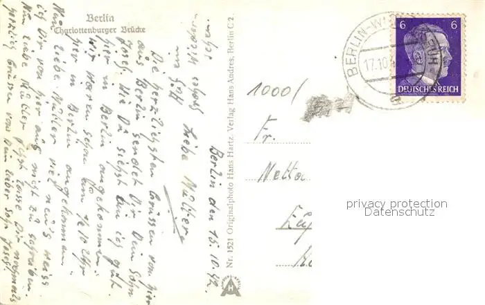 Berlin Charlottenburger Bruecke Berlin postalisch gelaufen 1942 Erhaltung siehe scans [WerneD78] WernPID7