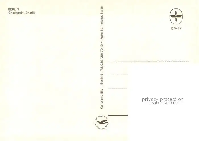 Berlin Checkpoint Charlie Berliner Mauer Berlin postalisch nicht gelaufen nach 1965 Erhaltung siehe scans [FriedD77] Frierer