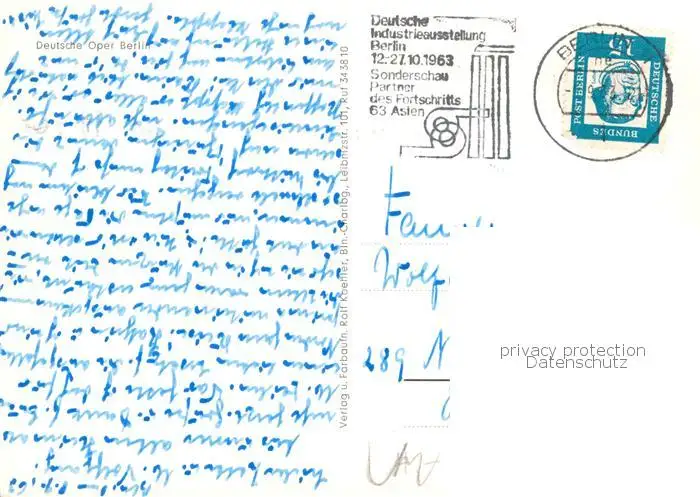 Berlin Deutsche Oper Berlin postalisch gelaufen 1963 Erhaltung siehe scans [WerneD78] WernPID7